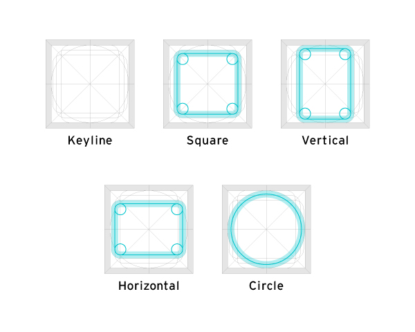 ガイドラインに沿って作成するのが難しい場合は、ガイドラインを逸脱し作成しても構いません。 認識しやすい形状であり、なおかつ他のアイコンと見た目が統一されていることを優先し作成してください。