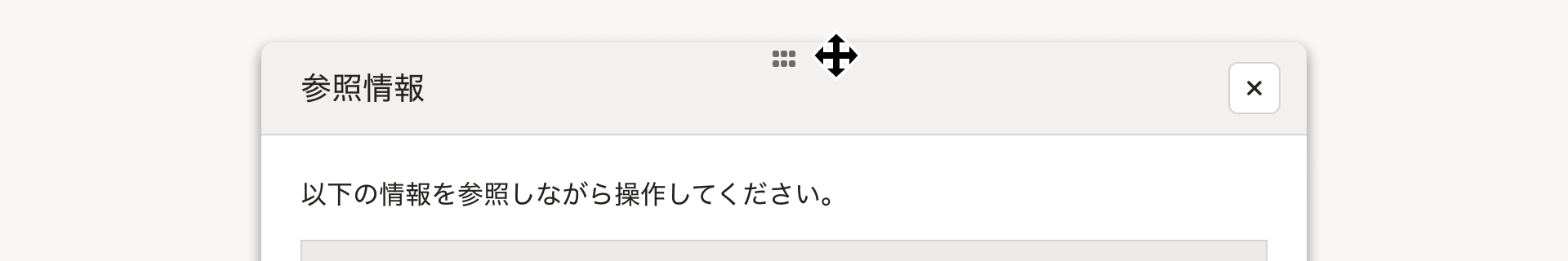 - ヘッダーエリアをドラッグしてダイアログの位置を移動できます。