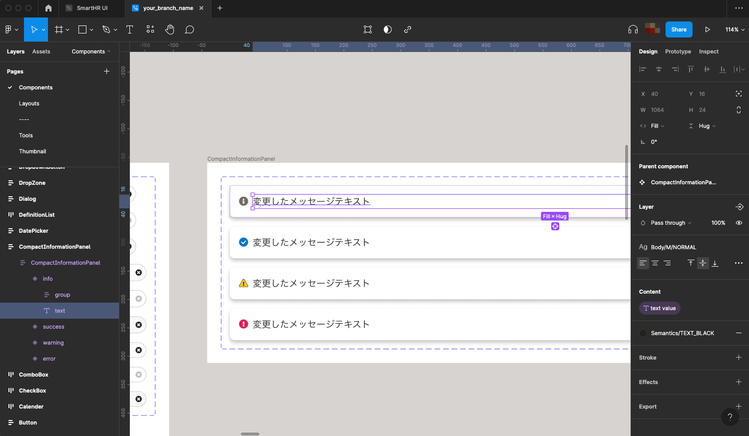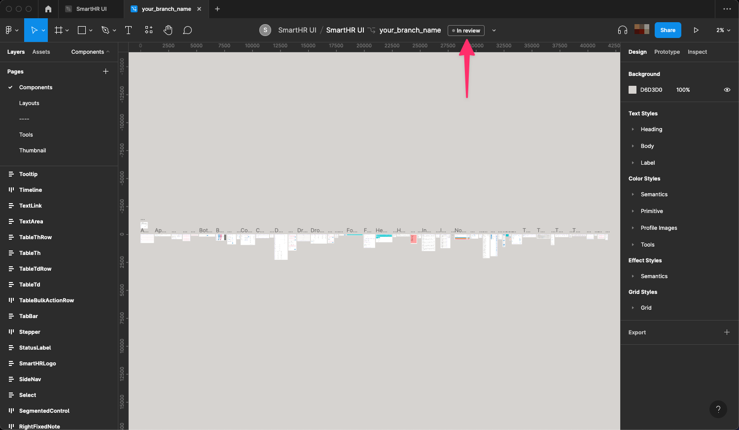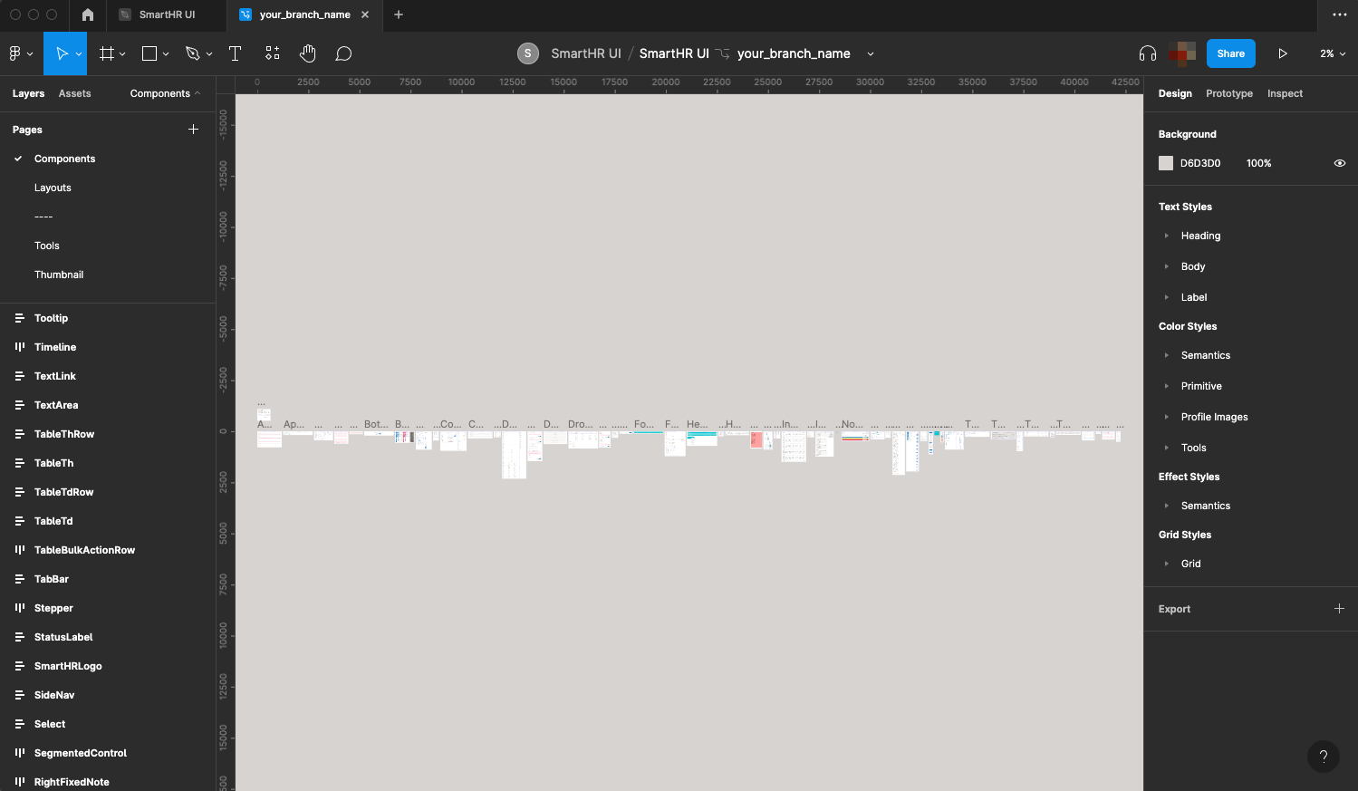 FigmaのSmartHR UI(ライブラリ)は組織全体で利用しているライブラリのため、意図しない更新から保護するために編集権限を制限し「ブランチ機能」を使って運用しています。 SmartHR UIにコンポーネントやスタイルを追加・変更したい場合は、本ページを参考にしてください。