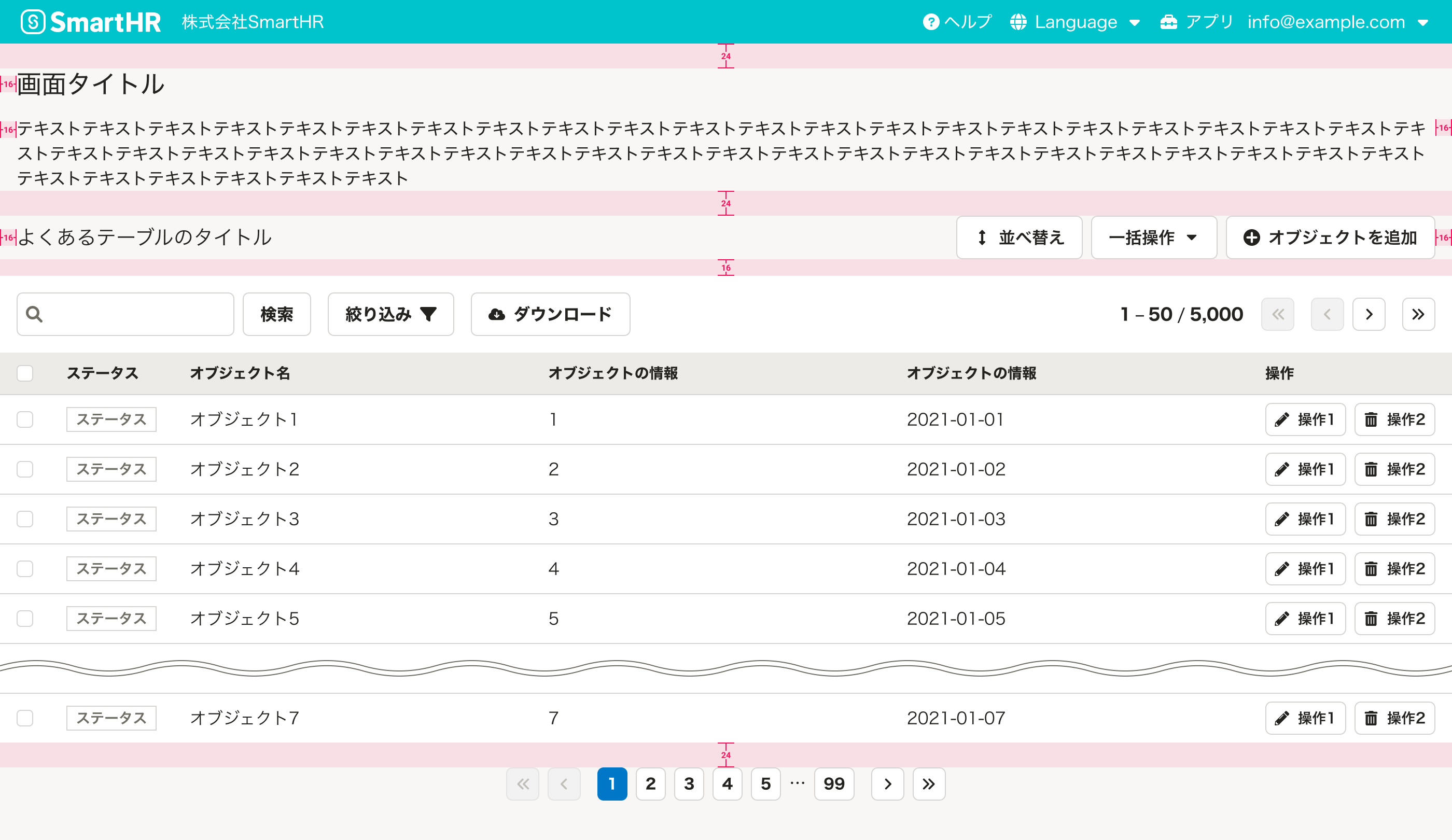 SmartHRに頻出する、表形式で一覧表示するUIのパターンをまとめています。
